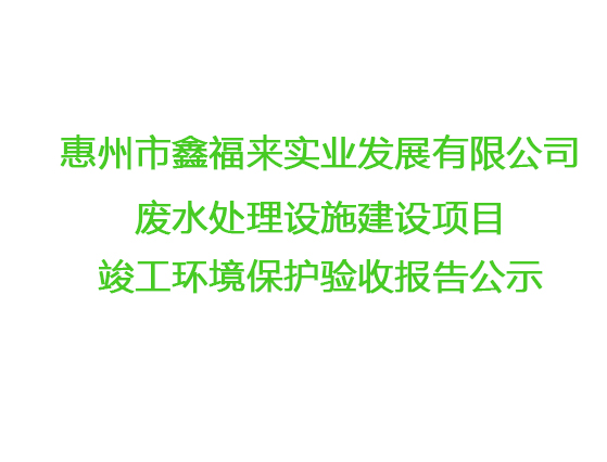 惠州市鑫福來實業發展有限公司廢水處理設施竣工環境保護驗收報告公示